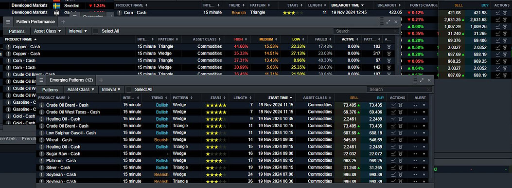 Breakout Patterns, Emerging Patterns & Pattern Performance to track signals generated by Pattern Scanner.